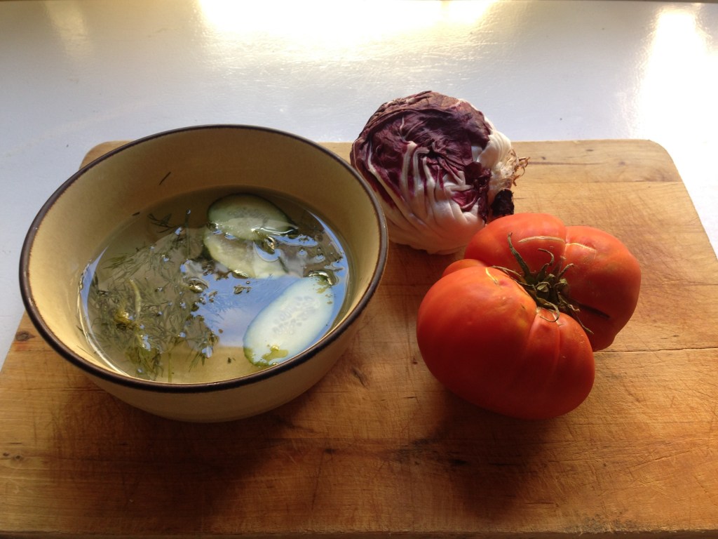 Years ago, friends of mine had an appetizer (salad?) course at their wedding that was the talk of the group for awhile. It was a peach and basil popsicle. I never saw one, or a picture, so my mind has created some pretty bizarre images over the years, including them using those DIY plastic stick and mold sets many of of us have as kids, a shocking peach and green edifice rising from an egg cup, and servers standing behind everybody at the head table, holding their popsicles while the revelers licked. I’m sure it was much simpler than any of those, and involved some clever plating mechanism like those things that hold ice cream cones, and was very nice. I mean, you probably don’t arrive on something like that for your wedding feast at random. Sure it made for great conversation among the extended friends, but in the moment, that thing has to taste amazing. I’ve never had the combination, that I can think of, so now’s the time.