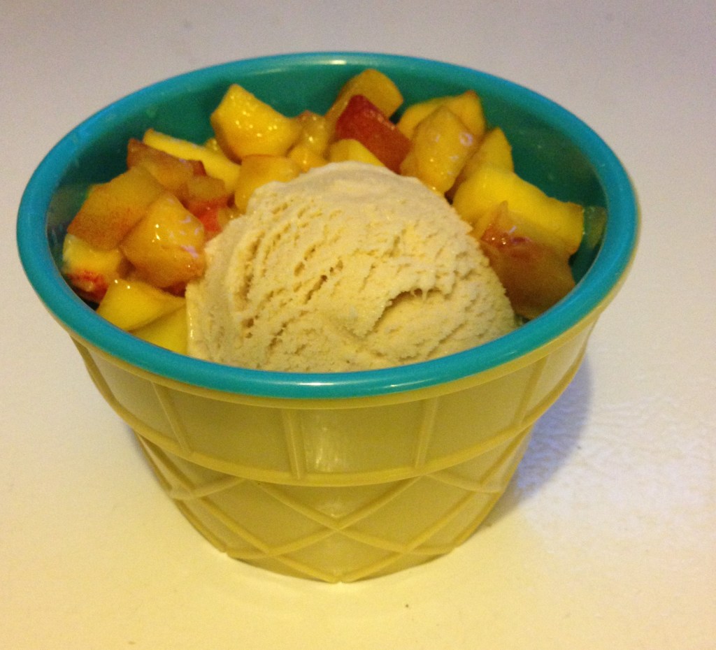 I have a couple of peachy plans. First, I’m going to do what is probably a boring Peaches’n’Cream, with peach chunks in a vanilla mix. I’ll probably lightly caramelize the peach chunks, both to make them sweeter and to reduce their water content a bit so they don’t ice up too much in the freezer. I suppose I could combine them with the Ruby chocolate chunks, and I think I have more than enough fruit to do just that.