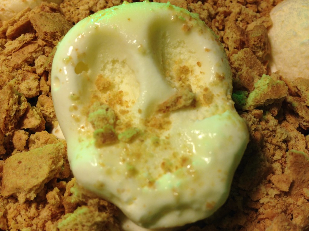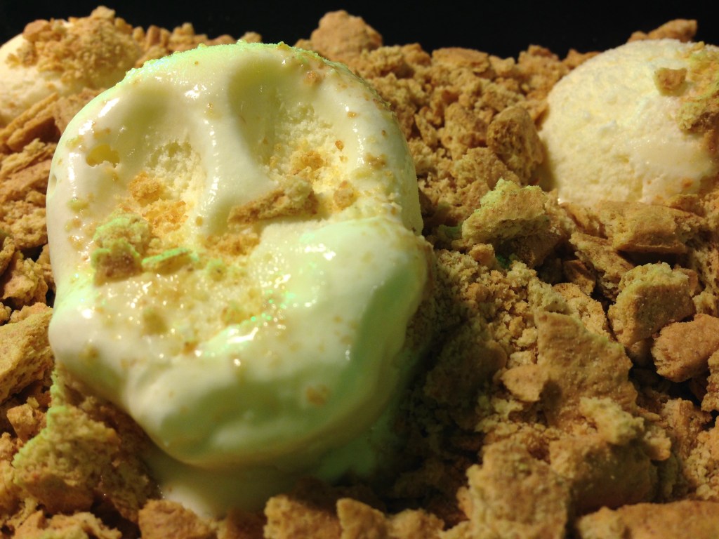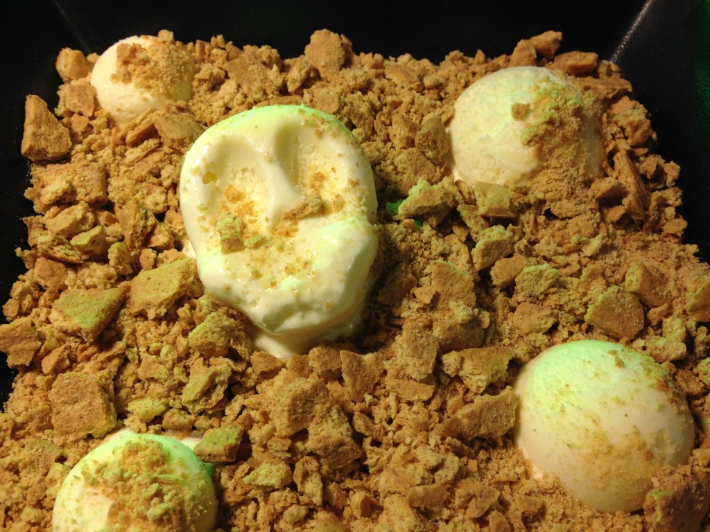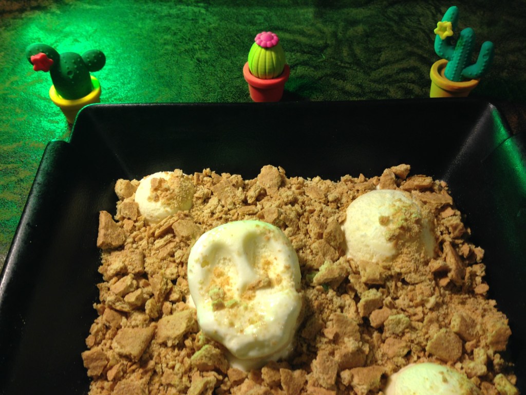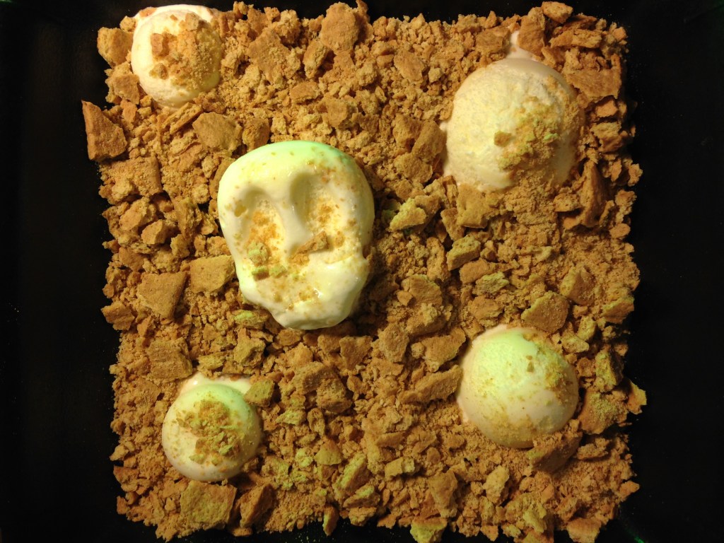 Hey Ice Cream Club! Did you ever feel like you’re lost in an implacable, endless dessert? Like a huge cheesecake? Or maybe a gigantic bowl of cheesecake ice cream? If that sounds corny, it is. I took that corn, roasted it, and made ice cream out of it. And then I made skulls out of that roasted corn ice cream and headed out into the dessert. I didn’t find an oasis, but I encountered a whole lot of crumbled graham cracker sand and rocks. It was very spooky also. Here’s the photos from my trip!
