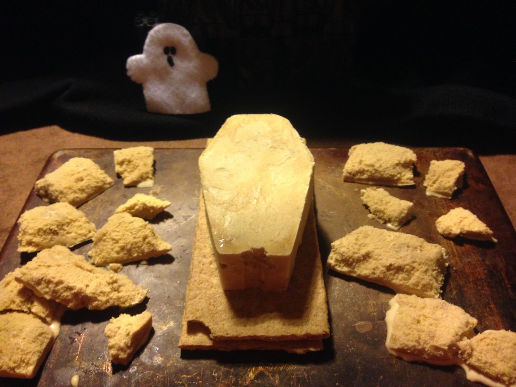 When a vampire wakes up after a long day’s rest, they’re typically pretty logey. Some keep a nice drinkbox of blood next to the coffin for that evening pick-me-up, some go and grab themselves a fresh barista right away, and some have made the big leap to coffee-based coffins. The truly savvy modern vampire has their coffins made entirely out of coffee ice cream, because it’s nice and cool in the crypt. The coffee crypt. How do you like your coffee? This crypt has a visitor in the form of a spooky ghost. Ghosts need caffeine too. They like capp-boo-chinos. Your Dad laughed.